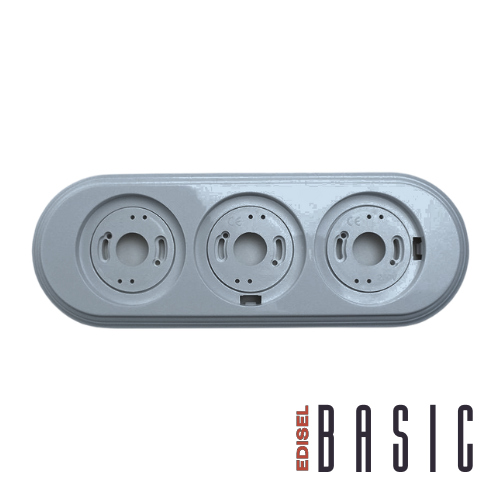 Рамка тройная пластиковая серая для установки ретро розеток и выключателей EDISEL Basic для открытого монтажа в помещении.