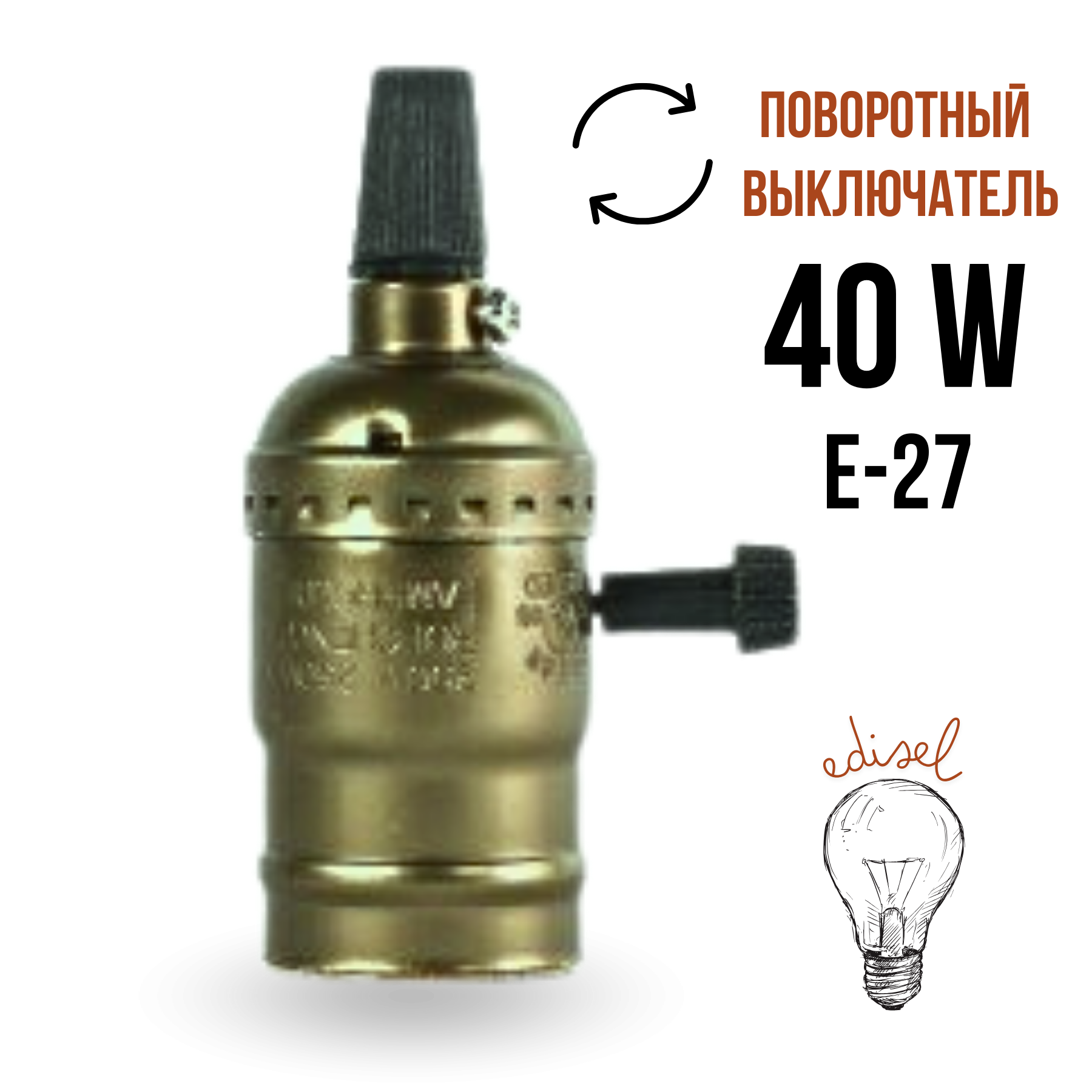 Патро в ретро стиле, материал - алюминий, с поворотным выключателем, предназначен для подключения декоративных ламп Эдисона мощностью до 60w. В комплекте имеется цанговый зажим, позволяющий надежно фиксировать ретро провод к патрону. Для приминения в качестве декоративной подсветки и освещения.