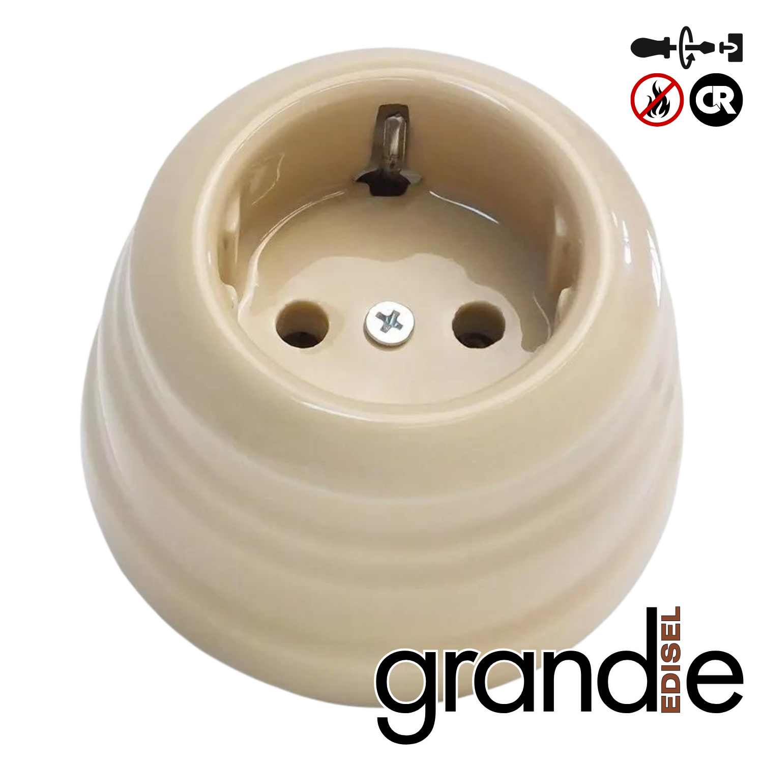 Ретро розетка из керамики EDISEL Grande бежевая, для открытого монтажа в помещении.