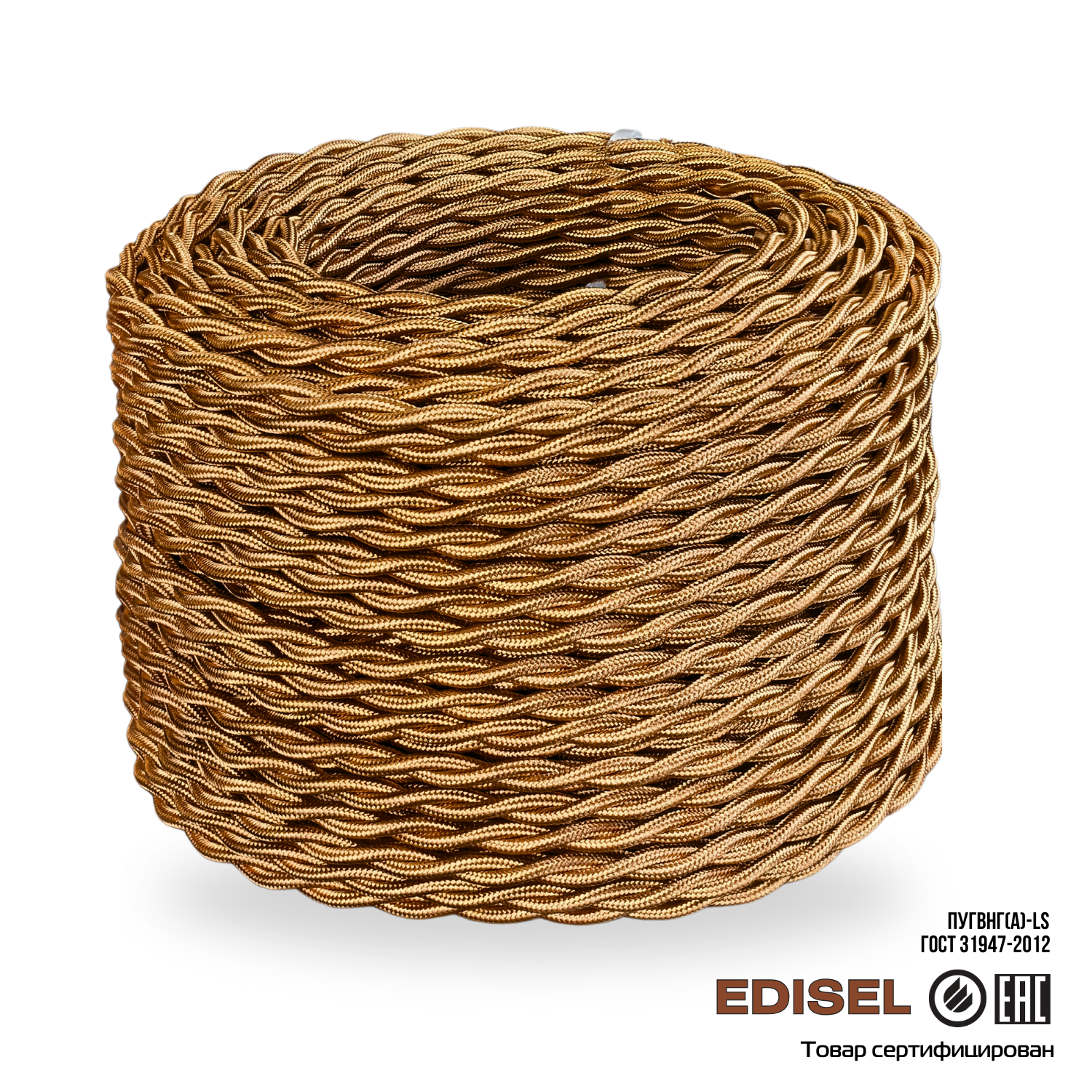 Витой ретро провод 2х1.5 медный шелк EDISEL ПРВ (ПуГВнг(А)-LS)