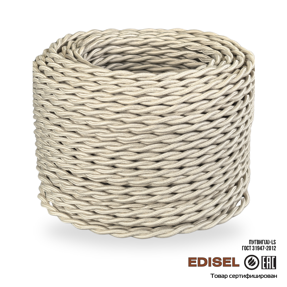 Витой ретро провод 2х2.5 бежевый EDISEL ПРВ (ПуГВнг(А)-LS)