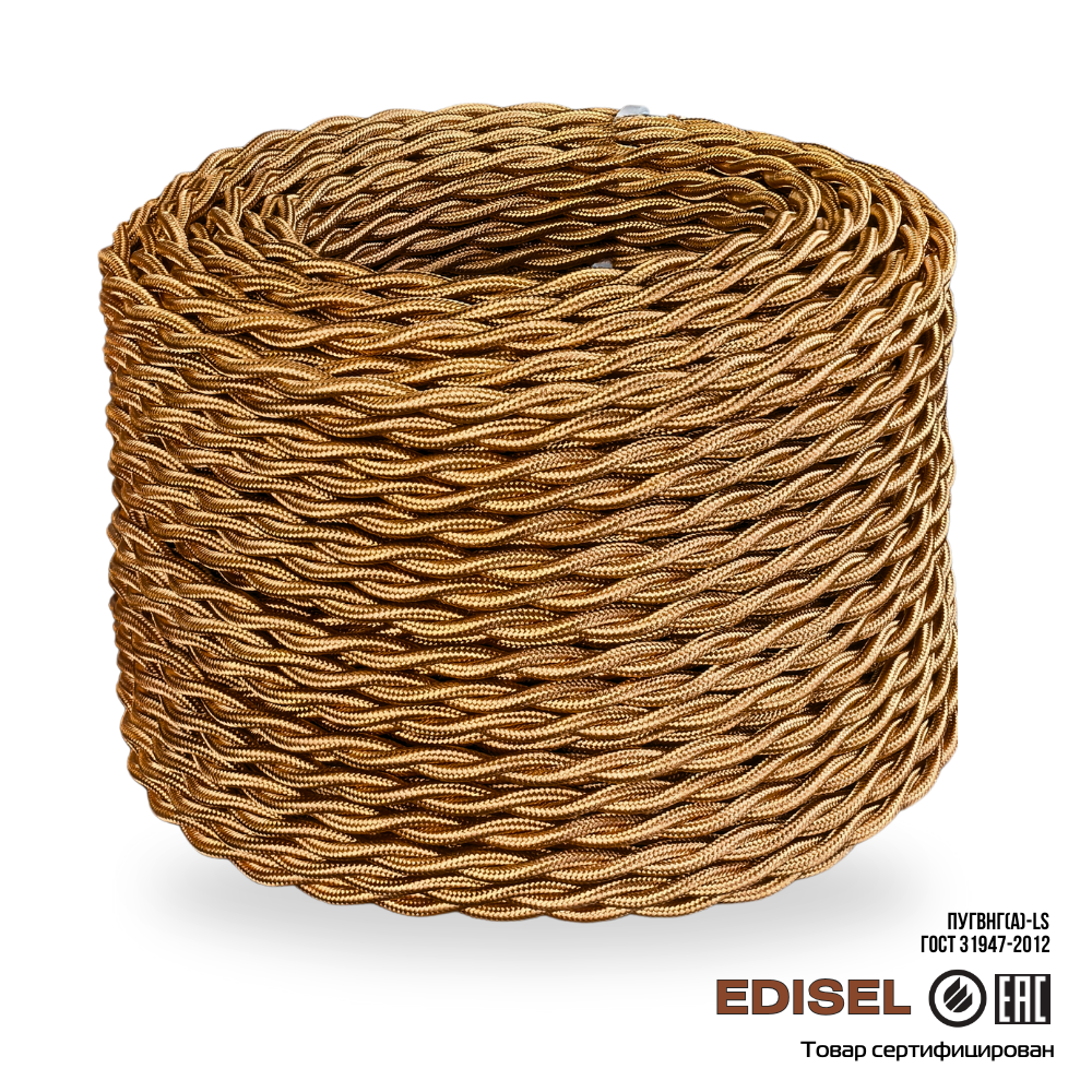 Витой ретро провод 2х2.5 медный шелк EDISEL ПРВ (ПуГВнг(А)-LS)