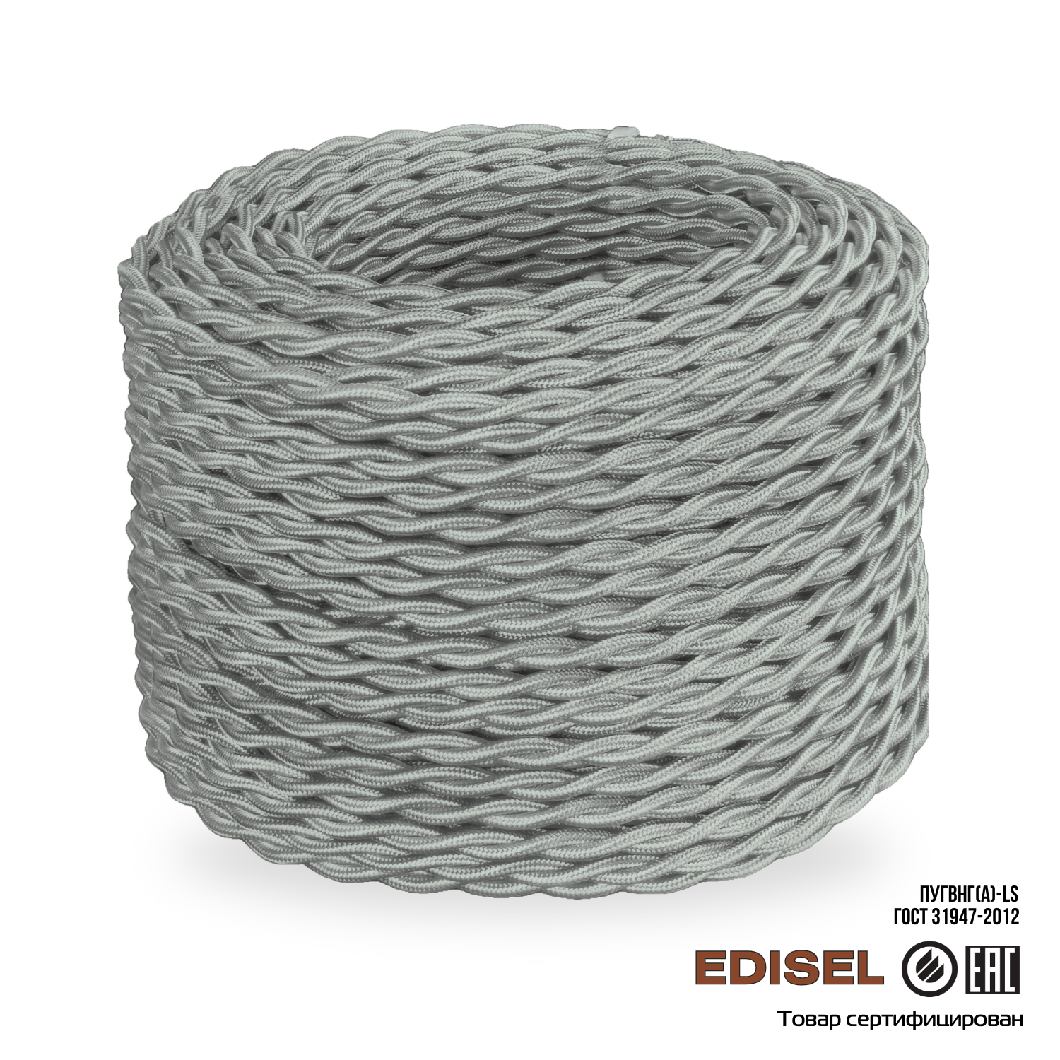 Витой ретро провод 2х1.5 серый EDISEL ПРВ (ПуГВнг(А)-LS)