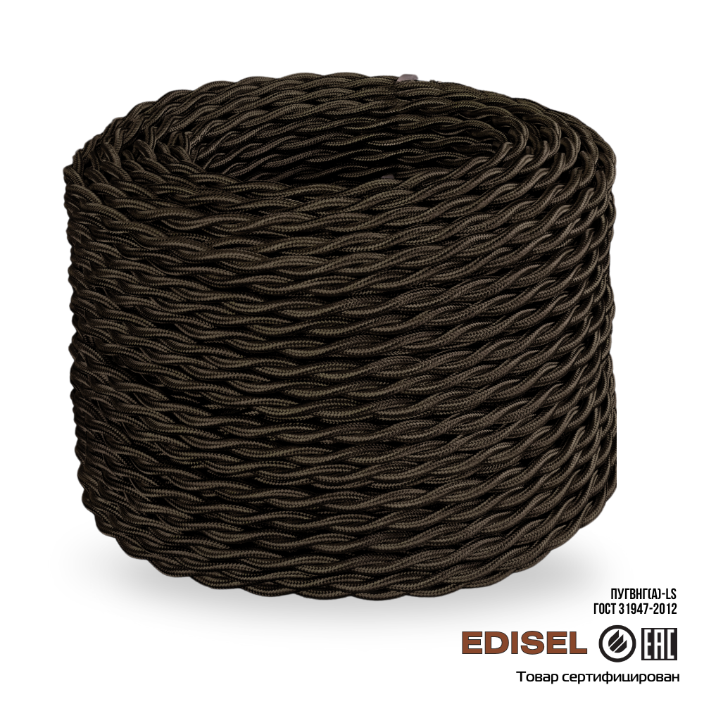 Витой ретро провод 2х2.5 темный шоколад EDISEL ПРВ (ПуГВнг(А)-LS)