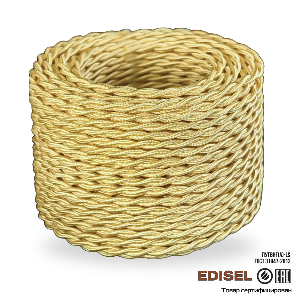 Витой ретро провод 2х2.5 золотой шелк EDISEL ПРВ (ПуГВнг(А)-LS)