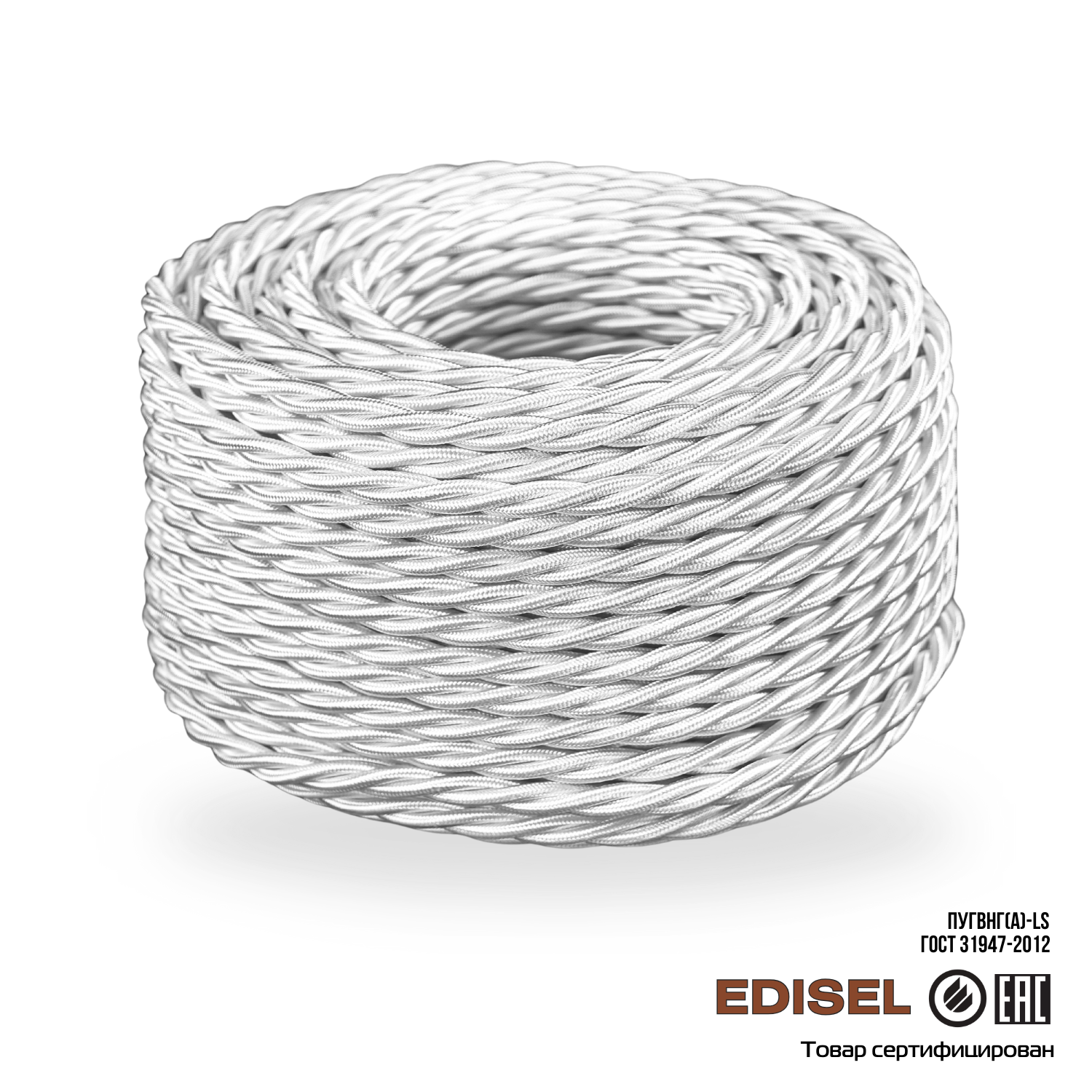 Витой ретро провод 3х1.5 белый шелк EDISEL ПРВ (ПуГВнг(А)-LS)