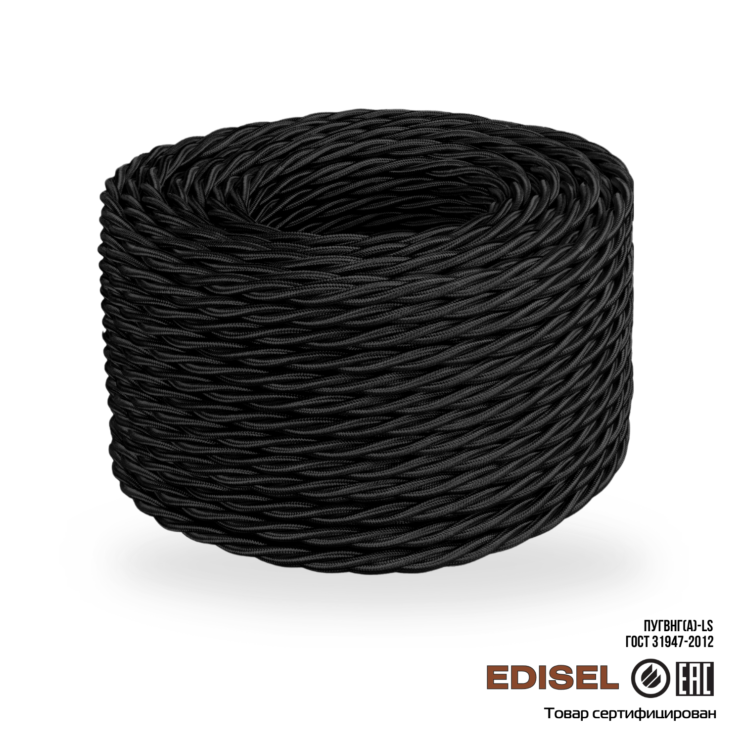 Витой ретро провод 3х1.5 черный EDISEL ПРВ (ПуГВнг(А)-LS)