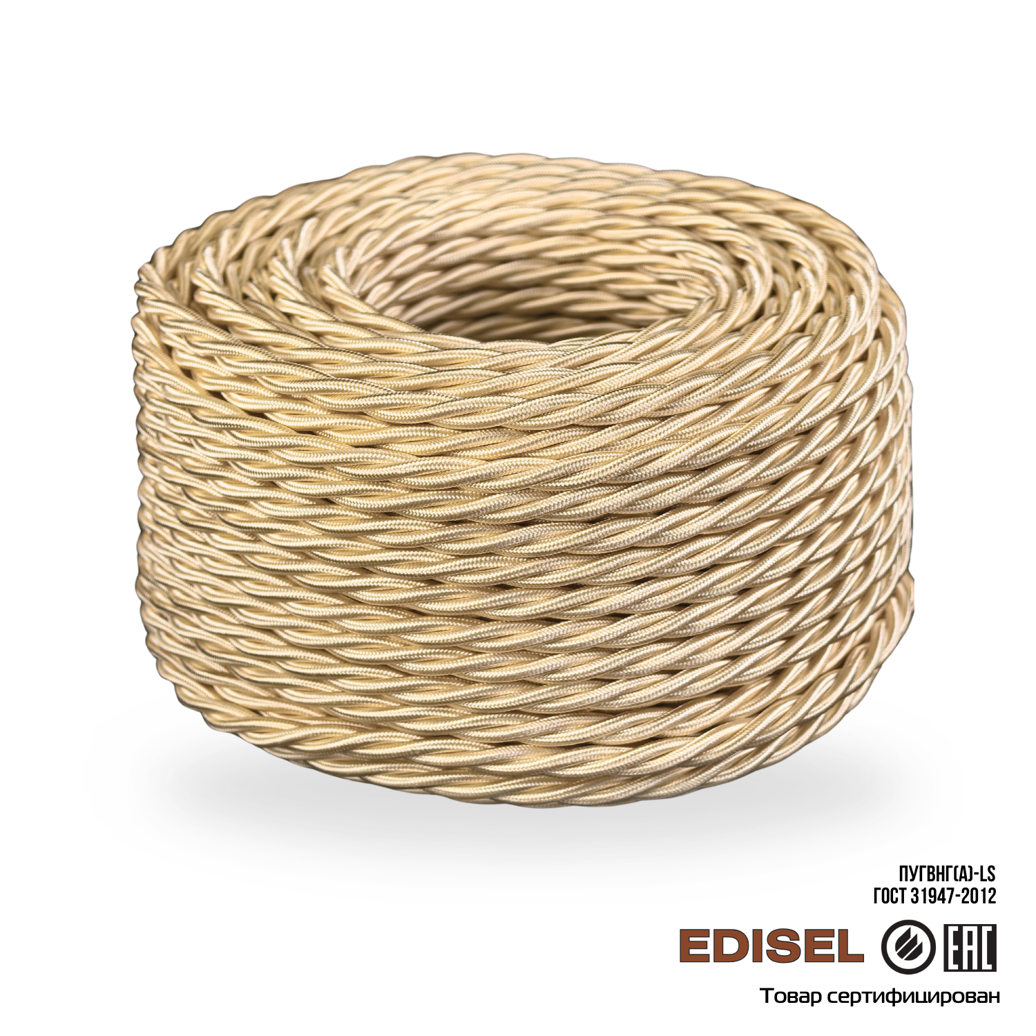 Витой ретро провод 3х1.5 песочный шелк EDISEL ПРВ (ПуГВнг(А)-LS)