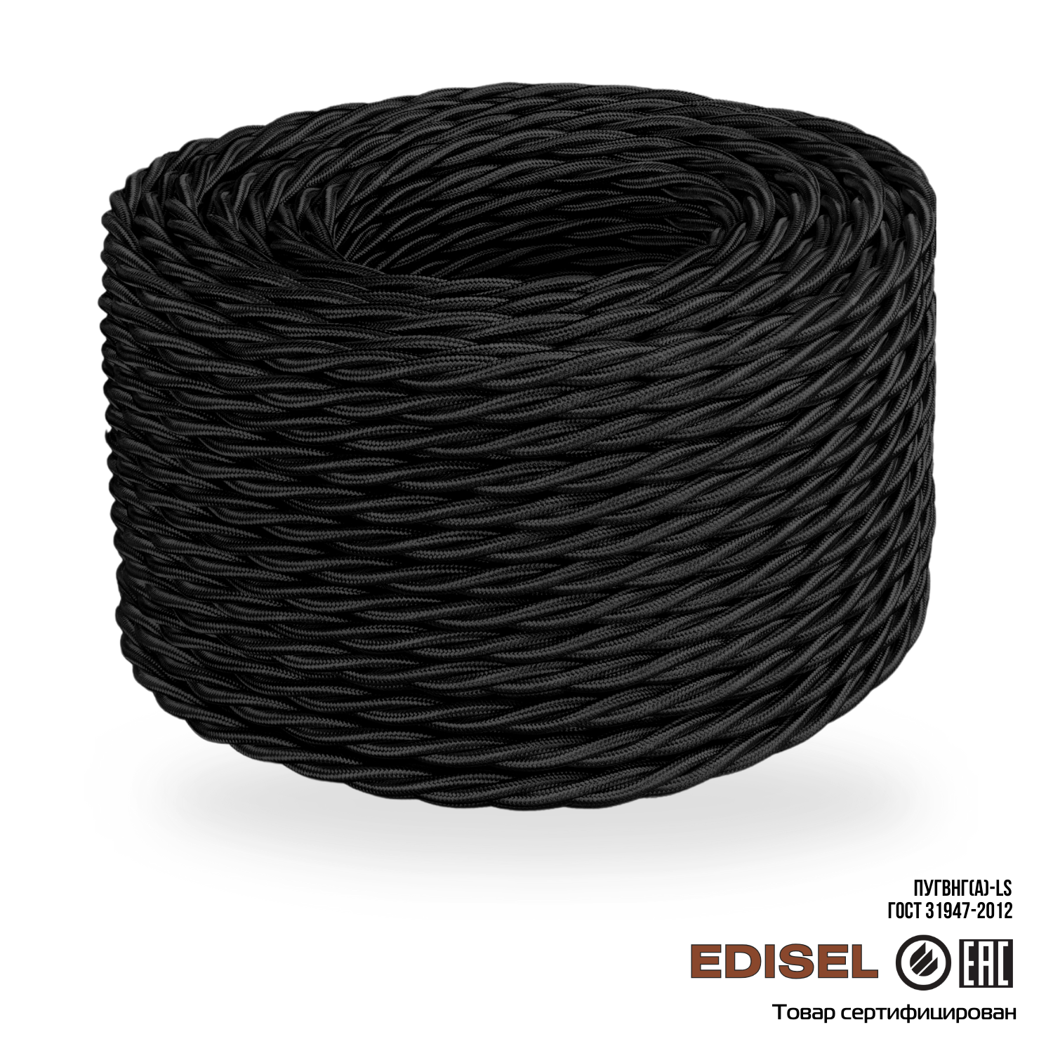 Витой ретро провод 3х2.5 черный EDISEL ПРВ (ПуГВнг(А)-LS)