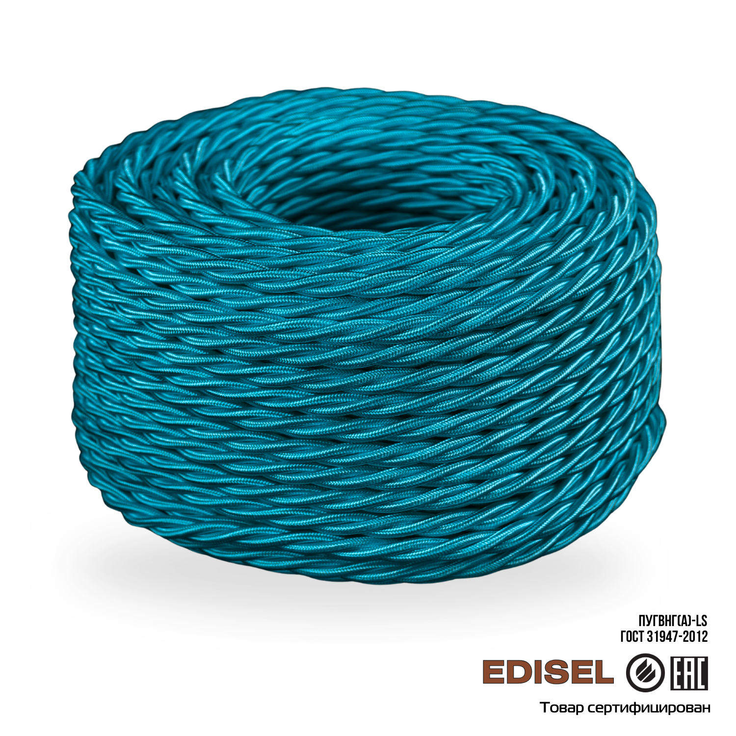Витой ретро провод 3х2.5 морская волна шелк EDISEL ПРВ (ПуГВнг(А)-LS)
