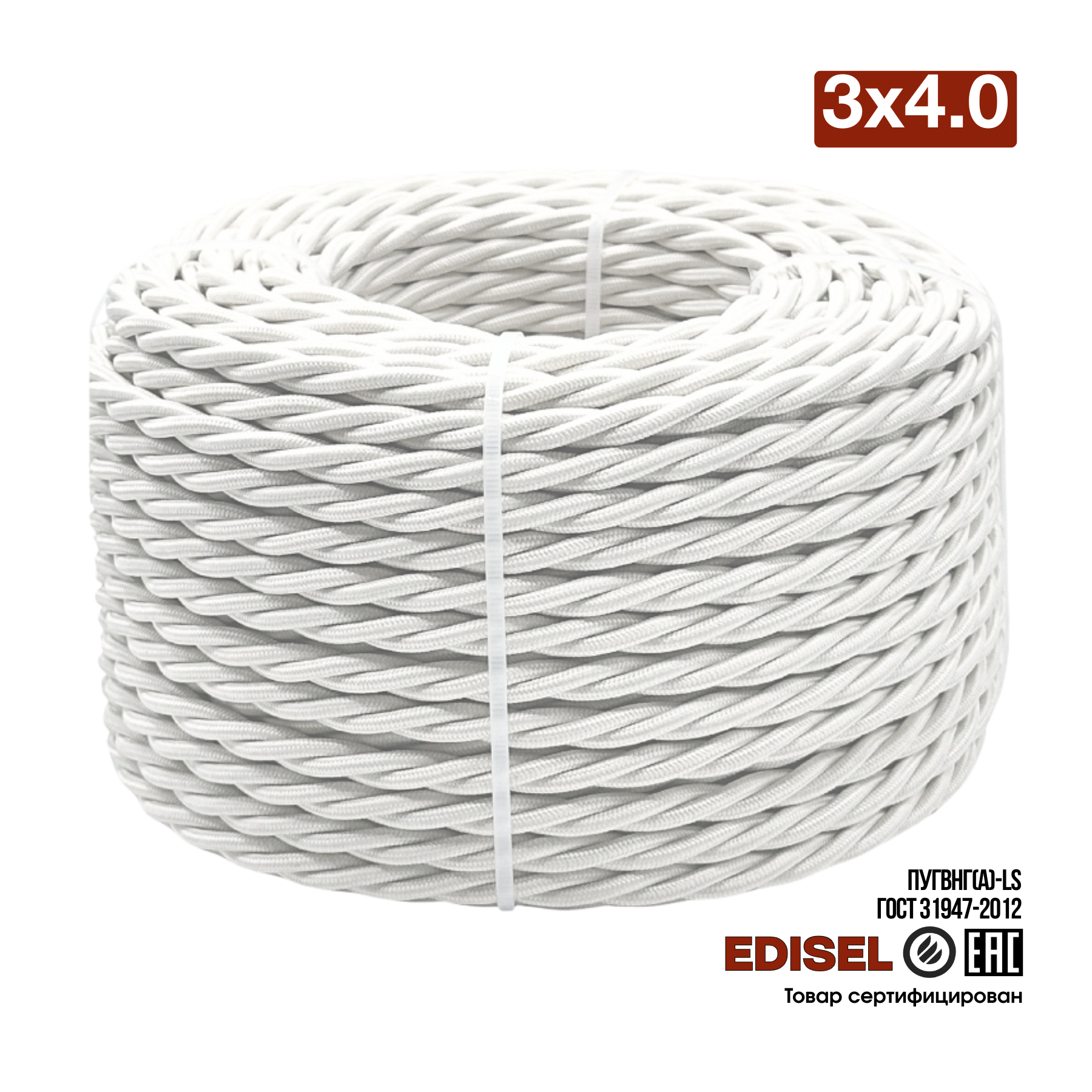 Витой ретро провод 3х4 белый EDISEL ПРВ (ПуГВнг(А)-LS)