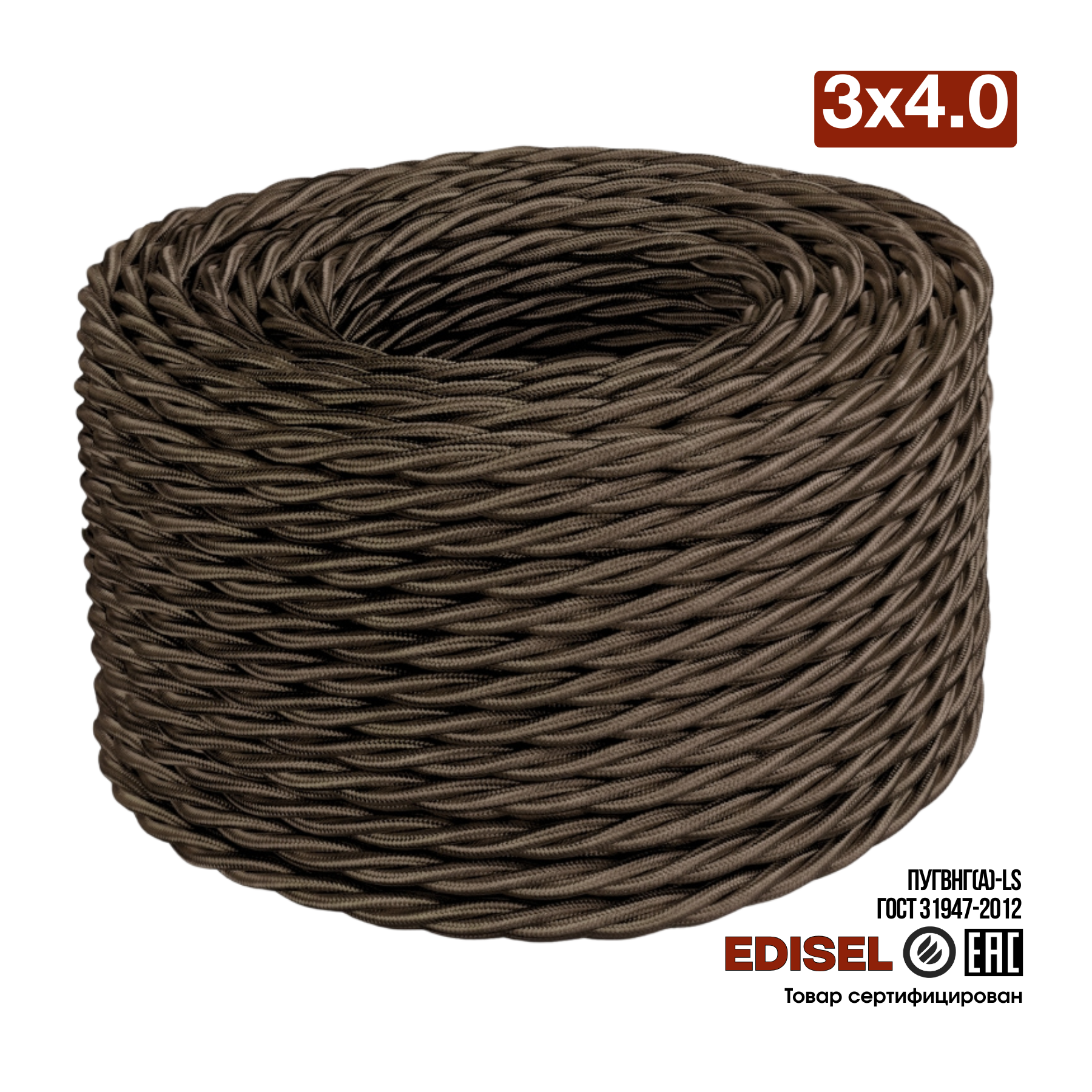 Витой ретро провод 3х4 шоколад EDISEL ПРВ (ПуГВнг(А)-LS)